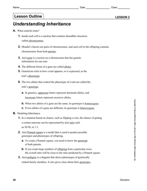 Reading Online Understanding Inheritance Outline Answer Key PDF